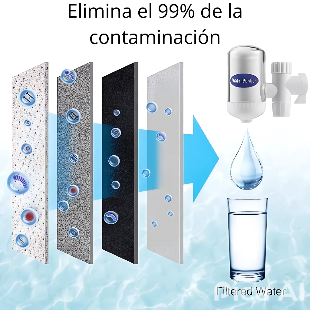 Protege a tu familia con el Purificador de Agua SWS, diseñado para eliminar bacterias, virus y químicos dañinos como cloro, plomo y pesticidas. Gracias a su filtro de cerámica de alta precisión (0.1 micras), tendrás agua limpia al instante para beber, cocinar o lavar alimentos.
