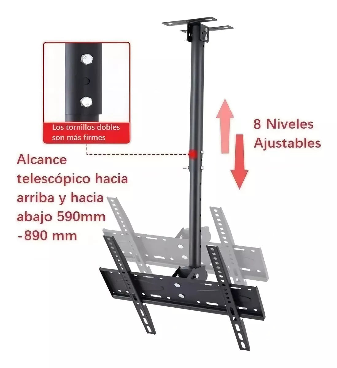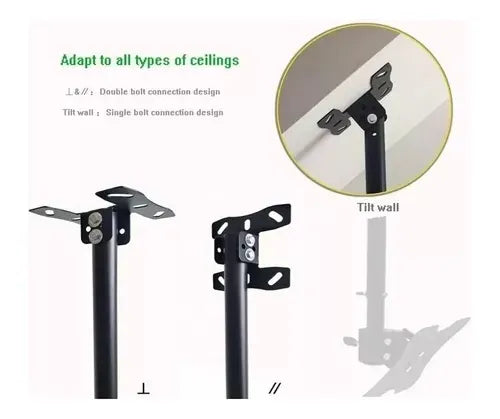 ¿Buscas un soporte para TV de techo resistente y fácil de instalar en Chile? 🇨🇱 El soporte BM20022 es ideal para televisores de 26 a 60 pulgadas, con capacidad para soportar hasta 45 kg. Perfecto para hogares, oficinas, salas de reuniones y espacios comerciales, este soporte permite ajustar la inclinación para obtener el mejor ángulo de visión y aprovechar al máximo tu espacio. 🎯